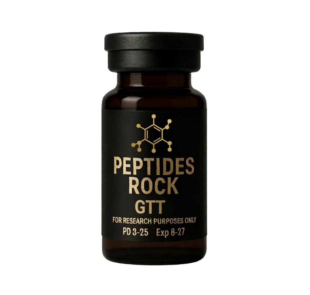 GTT (Glutathione) is a tripeptide composed of the amino acids glutamic acid, cysteine, and glycine, as referenced in research literature. Peptides Rock’ GTT is supplied as a lyophilized powder in a 1500 mg vial. The product undergoes third-party analytical testing to verify identity and composition.