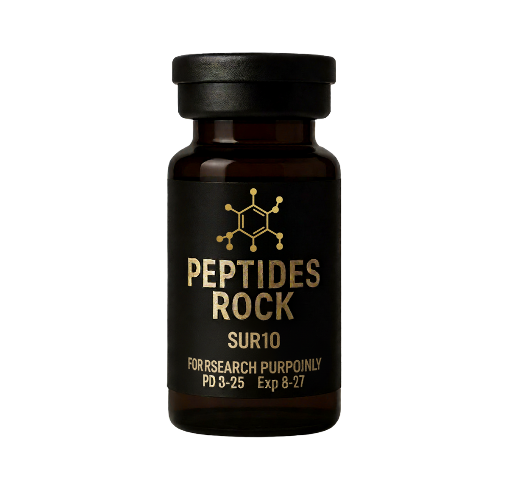 Peptides Rock’ SUR10 is supplied as lyophilized powder in 10 mg vials and undergoes third-party analytical testing to verify identity and composition.
